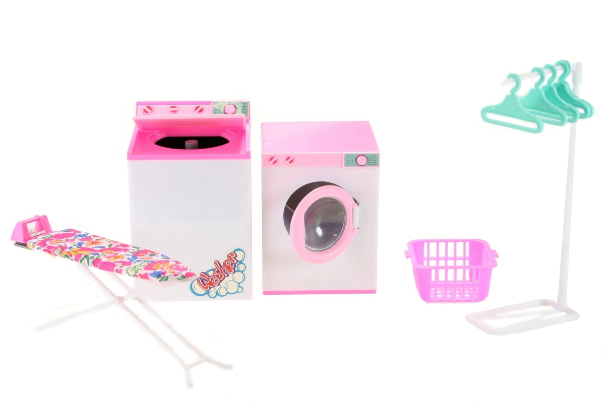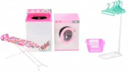 De set bevat alles wat kleine huishoud(st)ers nodig hebben: een compacte wasmachine en droger, een stabiele strijkplank met strijkijzer, een praktisch kledingrek met hangers en een wasmand. Pop en kleertjes zijn niet inbegrepen. Het speelgoed is bedoeld voor kinderen vanaf 3 jaar.