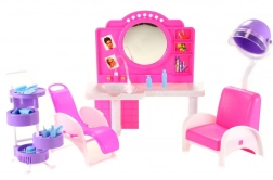 Creëer thuis je eigen kleine kapsalon met de Glorie kapperssalon-speelset. Kinderen kunnen de rol van kapster uitproberen, het haar van favoriete poppen stylen en zo hun fantasie en fijne motoriek ontwikkelen. Realistische elementen, zoals de kaptafel met spiegel en wasbak, kappersstoelen en een haarföhnkap (decoratief, niet functioneel), geven het spel een authentiek karakter.