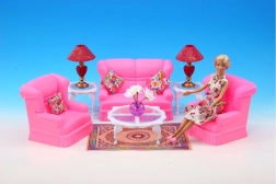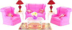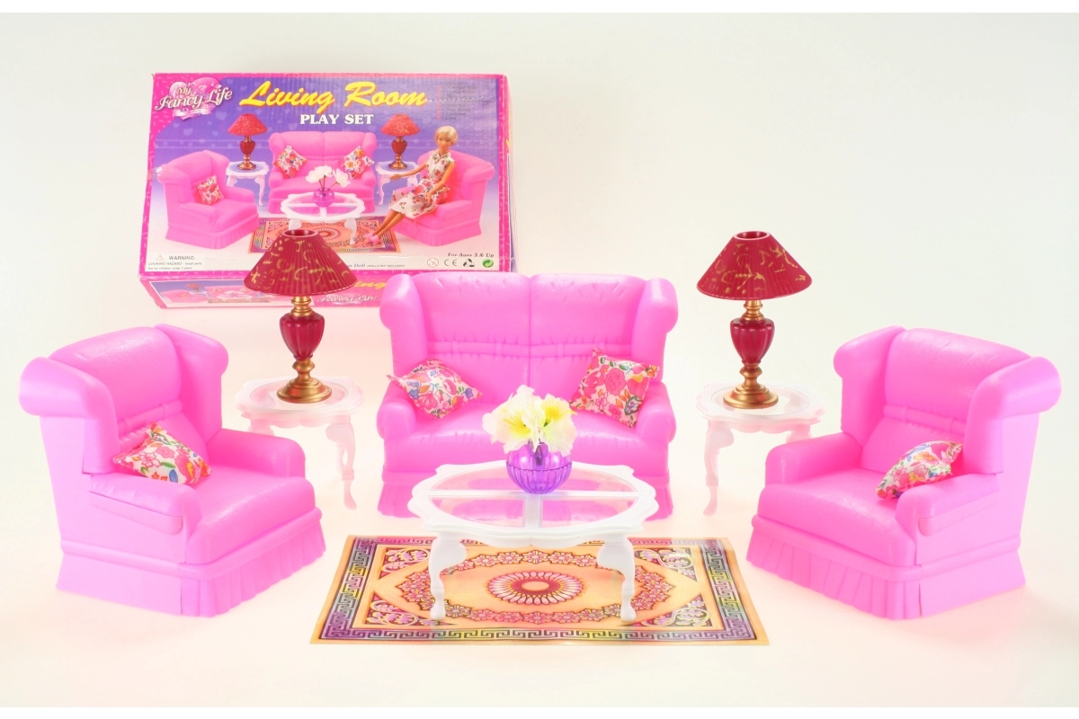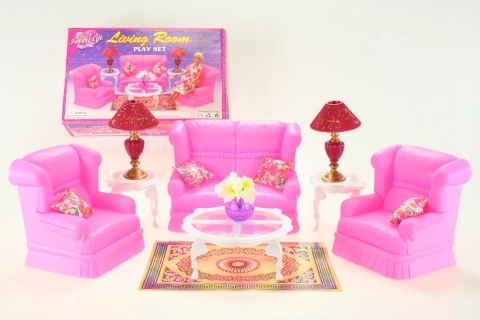 Creëer een elegante relaxhoek voor poppen met de GLORIE-set. Dankzij de uitgebreide uitrusting en realistische accessoires kunnen kinderen gemakkelijk alledaagse situaties naspelen, interieurs ontwerpen en sociale vaardigheden en verbeeldingskracht ontwikkelen. De set is gemaakt van duurzaam kunststof en geschikt voor gangbare poppenformaten.
