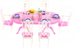 Glorie eettafelset is ideaal voor kinderspel met complete uitrusting voor tafelen. Bevat een grote plastic tafel en zes stoelen met kwalitatieve accessoires.