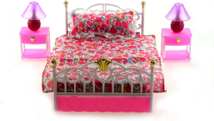 - Realistische accessoires: bed, 2 nachtkastjes, 2 functionele lampjes