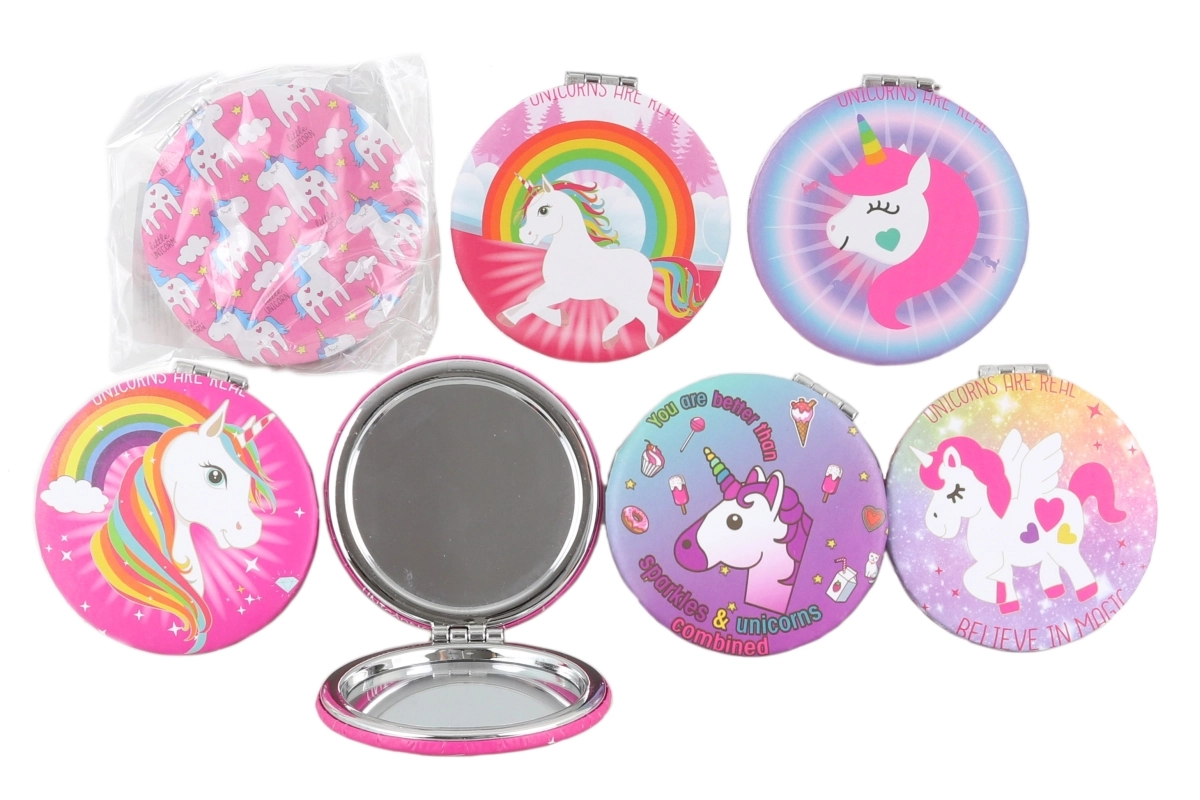 Stijlvol zakspiegeltje met een eenhoornmotief van 7 × 7 cm, ideaal voor in je handtas en op reis. Biedt een compact formaat, comfortabel gebruik en een schattig design dat liefhebbers van eenhoorns zal bekoren. Verpakt in een zakje. Dit product is geen speelgoed.