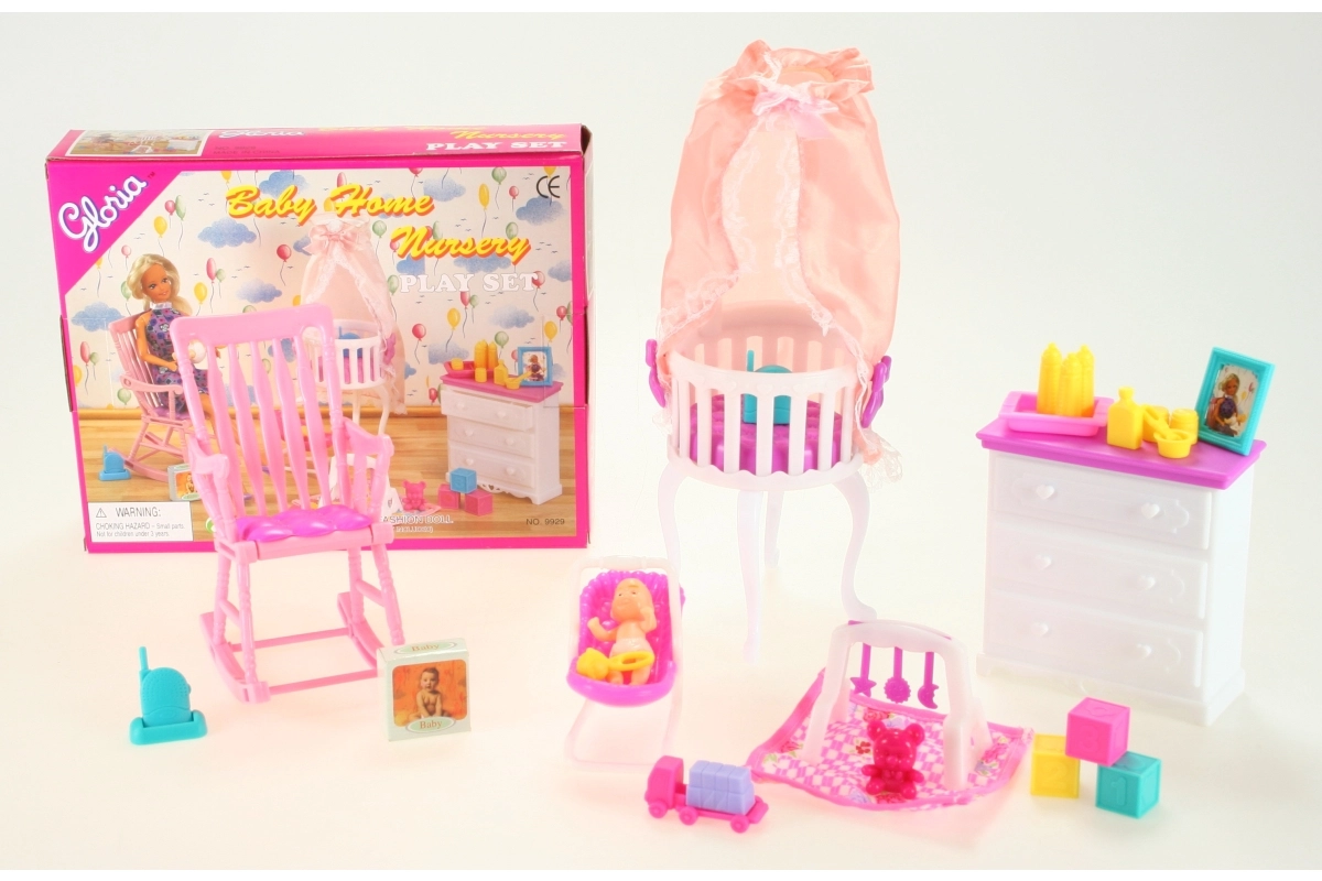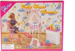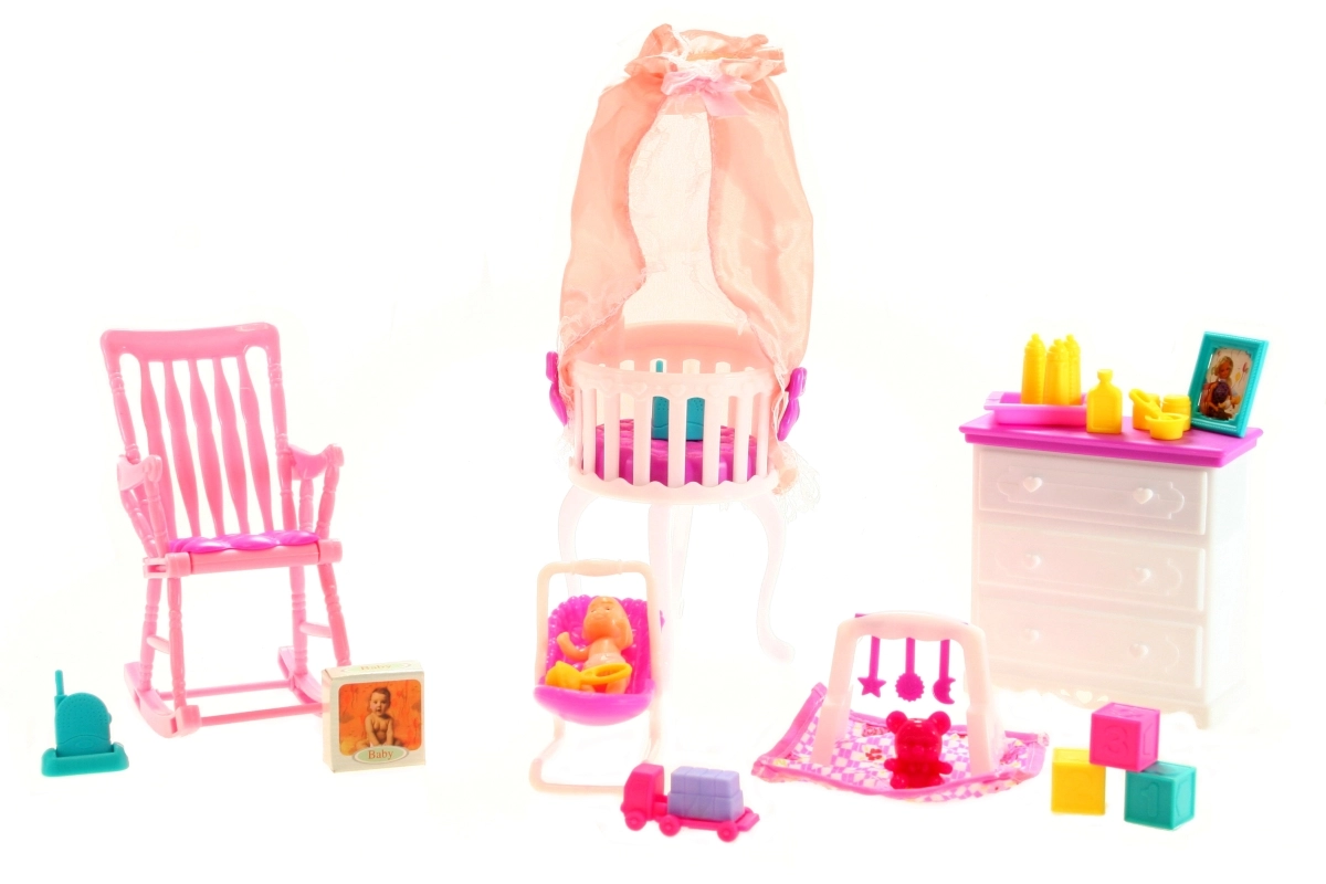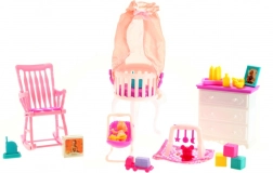 Deze rijk uitgeruste set maakt elk spel tot een realistische ervaring. Kinderen kunnen hun eigen babyhoekje inrichten, spulletjes opbergen in de commode, de baby in het ledikantje met hemel leggen en in de stijlvolle stoel schommelen. De set stimuleert creatief spel, fijne motoriek en rollenspel.