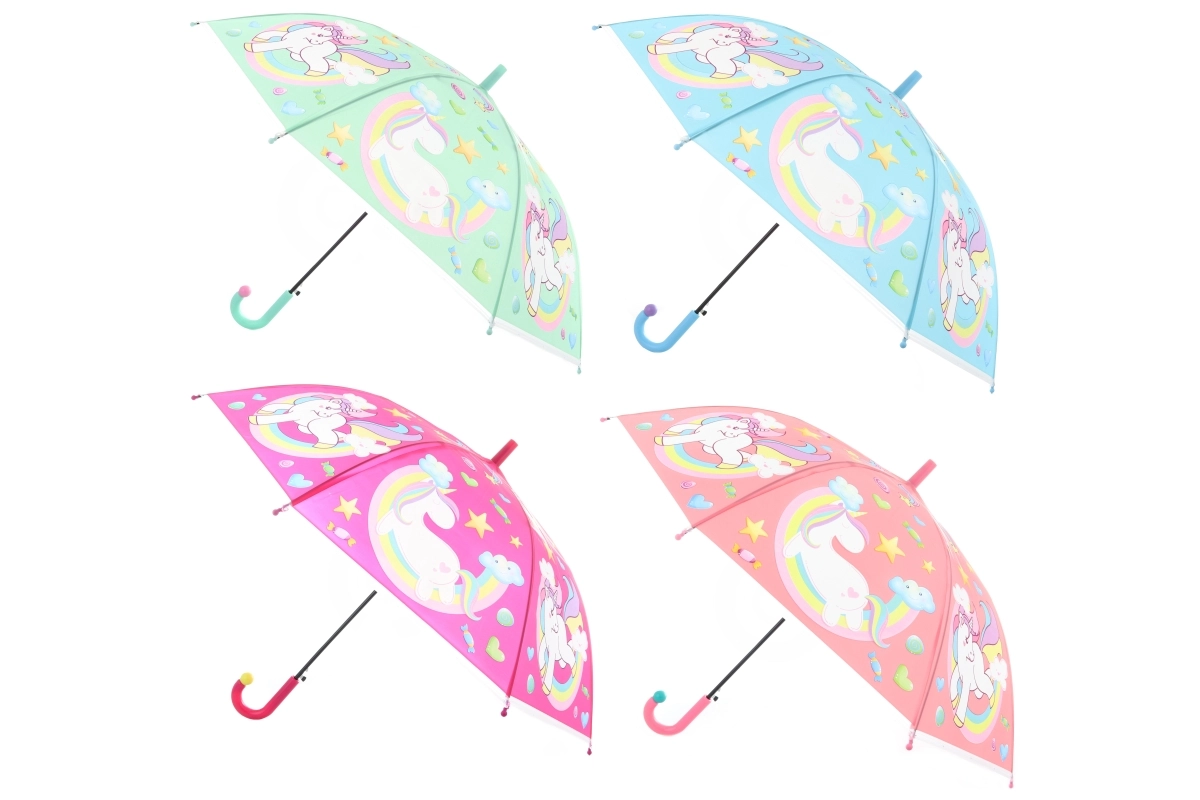 Geniet van comfort en speelse stijl met deze eenhoornparaplu. Dankzij het automatische mechanisme opent hij gemakkelijk en snel, zodat je in een oogwenk droog staat. De lichte constructie is ideaal voor op reis en naar school.