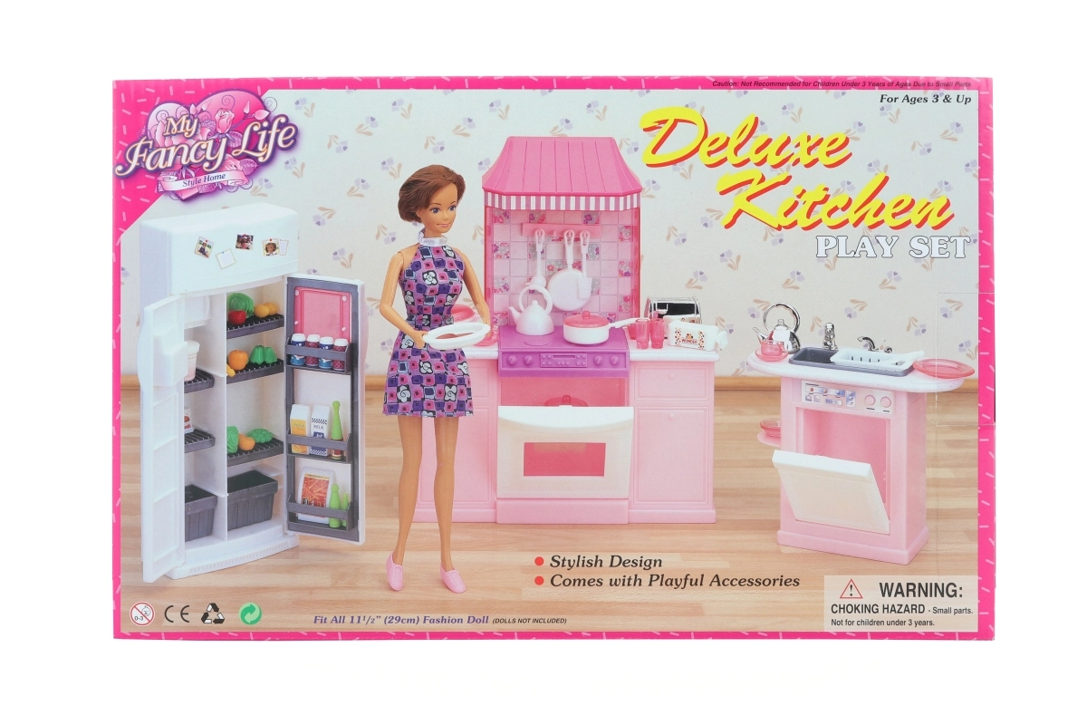 De stijlvolle GLORIE keukenset verandert de kinderkamer in een kleine huishouding. Kinderen zullen het gedetailleerde ontwerp waarderen met een inbouwoven, een aparte gootsteen met vaatwasser en een functionele koelkast waarin ze de meegeleverde etenswaren kunnen opbergen. Realistische accessoires stimuleren creativiteit en de ontwikkeling van sociale vaardigheden tijdens het spelen.