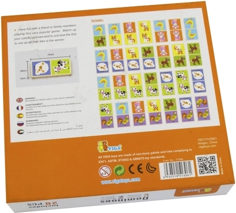 Viga Domino combineert spel met leren dankzij de kleurrijke illustraties die kinderen gemakkelijk verbinden.