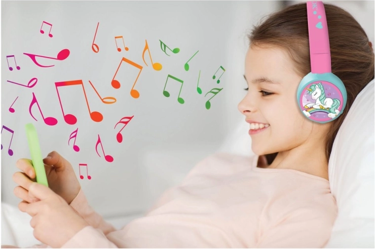 Ingebouwde microfoon voor het aannemen van oproepen via de bedieningsknoppen. Het maximale volume is 85 dB ter bescherming van kinderoren. Met de mogelijkheid om nummers te wisselen, oproepen te beantwoorden en het volume te regelen. Verstelbaar voor alle hoofdmaten. Hoogcapacitaire oplaadbare batterij. Opladen via USB‑C-poort (kabel is inbegrepen).