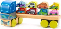 De houten vrachtwagen met auto’s van het merk Cubika is ideaal voor de ontwikkeling van de sensomotorische vaardigheden en creativiteit van kinderen. Milieuvriendelijk en gecertificeerd product van hoogwaardig hout.