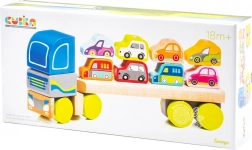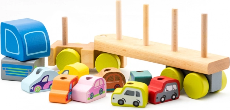 Cubika presenteert een unieke houten vrachtwagen met auto’s die kinderen zal enthousiasmeren door de kleuren en het design. De puzzel bevat 12 delen en maakt het mogelijk om 8 miniatuuraatjes te vervoeren. De lengte van de vrachtwagen is 32 cm en de individuele autootjes meten ongeveer 5 cm. Het speelgoed helpt bij de ontwikkeling van: