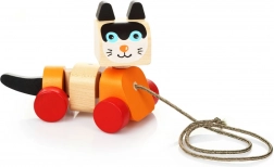 Het houten trekspeelgoed, ontworpen in de vorm van een vrolijk kitten, is ideaal voor plezier en voor de ontwikkeling van motorische vaardigheden van kinderen. Het speelgoed is uitgerust met een beweegbare romp en wielen, wat zorgt voor vloeiende en leuke bewegingen tijdens het trekken aan het koordje. Het kleurrijke design trekt de aandacht van kinderen en moedigt hen aan tot actief spel.