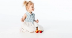 Dankzij de beweeglijkheid en de mogelijkheid om te trekken ondersteunt het speelgoed de ontwikkeling van de fijne motoriek.