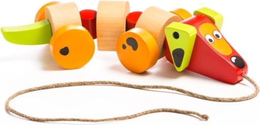 Dankzij de wieltjes en het touwtje is het speelgoed gemakkelijk te besturen en kunnen kinderen het overal mee naartoe trekken.