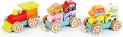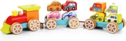 Deze kleurrijke houten puzzel bevat 14 onderdelen, waarmee kinderen een trein kunnen bouwen met twee wagons en acht autootjes. Ze spelen niet alleen met de losse onderdelen, maar ontwikkelen ook hun sensomotorische vaardigheden, logisch denken en creativiteit.