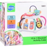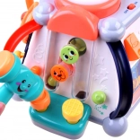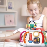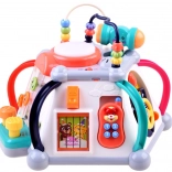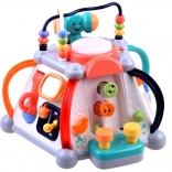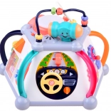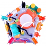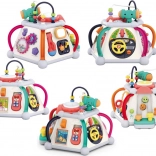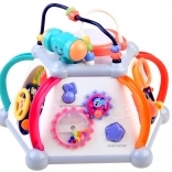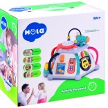 De HOLA multikubus biedt een rijke variatie aan activiteiten voor de allerkleinsten. Elke zijde biedt een ander type spel – van autorijden tot tandwielen met licht en melodieën en een microfoon met een verlicht “televisiescherm”. De bovenkant verbergt kralenlabyrinten, een lichtgevende trommel en een plek om de hamer op te bergen. Alles is ontworpen voor kleine kinderhandjes en veilig ontdekken.
