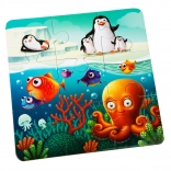 Vrolijke illustraties uit de natuur en de water- en poolwereld trekken de aandacht en stimuleren het leren kennen van dieren en hun leefomgeving.