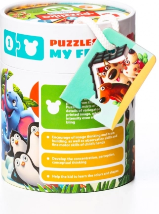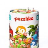 Ontdek spelend leren met de PUZZLIKA-puzzel, die kinderen begeleidt bij hun eerste stappen in de wereld van cijfers. Elk paar verbindt een illustratie van een groepje dieren met het bijbehorende cijfer, wat op natuurlijke wijze tellen van 1 tot 10, visuele waarneming en het leggen van verbanden ontwikkelt. De grote en stevige stukjes zijn makkelijk vast te pakken en te leggen.