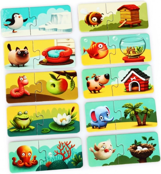 Kinderen koppelen 10 dieren aan hun woonplekken en oefenen logica, geheugen en aandacht. Ideaal voor het kleuteronderwijs.