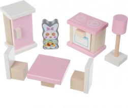 Stap de fantasiewereld binnen met het Houten poppenmeubilair Keukentje, een prachtige 10-delige set die je kinderen meeneemt naar een wereld van eindeloze creativiteit. De set bevat: