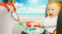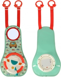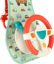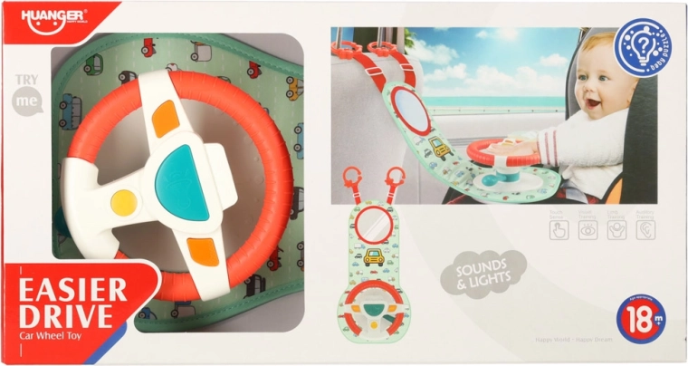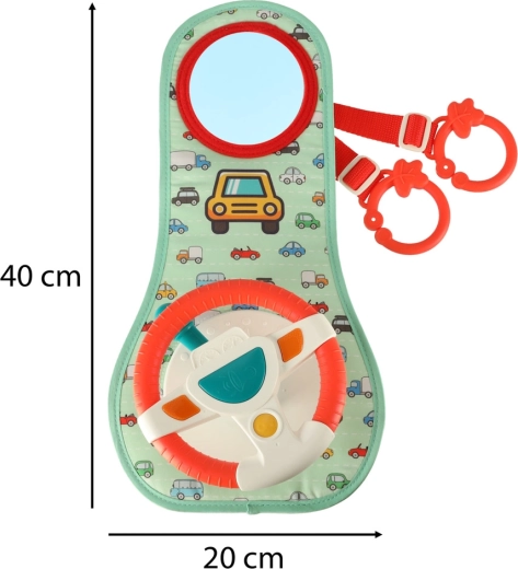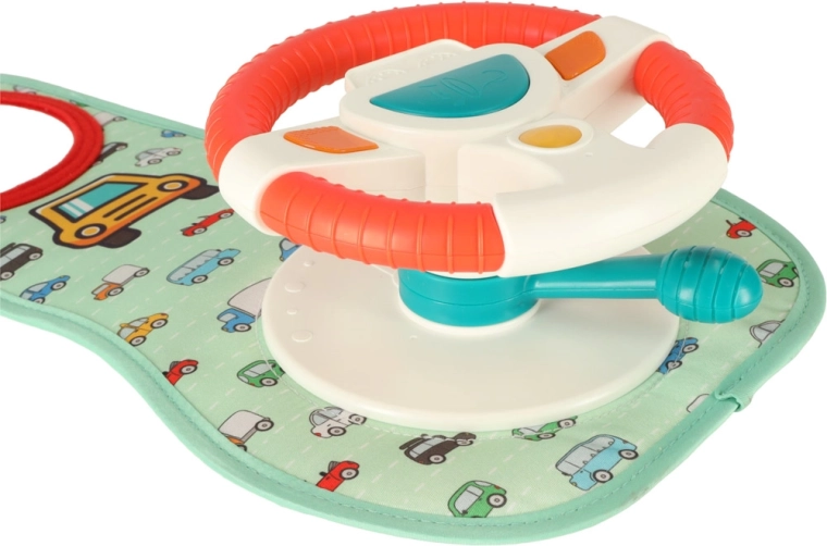 Dit interactieve autostuur, ontworpen om uw kind te vermaken tijdens het reizen, bevat een gekleurde paneel met stuur en een veiligheidsspiegel. Het bevat vier knoppen en een zintuiglijke hendel die geluiden en kleurrijke lichten bieden, en de fantasie en zintuigen van het kind stimuleren.