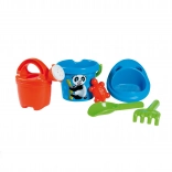 Schattige 6-delige zandset van ANDRONI met pandamotief maakt kleine bouwers blij op het strand en in de zandbak. Gemaakt in Italië van hoogwaardig kunststof, veilig vanaf 12 maanden en compleet uitgerust: emmer (Ø 13 cm, hoogte 11 cm), gieter 0,5 l, zeef, schepje, harkje en een vormpje in de vorm van een schildpadje.