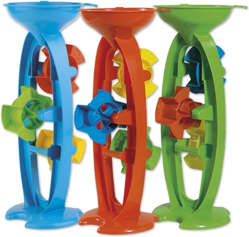 Ontdek de magie van spelen met water en zand. Deze ANDRONI-molen met een drievoudig schoepenmechanisme komt eenvoudig in beweging door water te gieten of zand te strooien. Kinderen oefenen zo spelenderwijs hun oog-handcoördinatie en leren over oorzaak en gevolg.