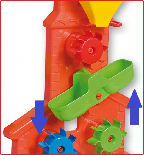 Kleurige molen voor zand en water met een hoogte van 42 cm, gemaakt van kwaliteitskunststof in Italië, bezorgt de kleinste ontdekkers veel plezier. Dankzij drie schoepenwielen, een verstelbare schuif voor doorstroomregeling en een brede, stabiele basis stimuleert hij de fijne motoriek en zintuiglijke waarneming. Geschikt voor kinderen vanaf 12 maanden.