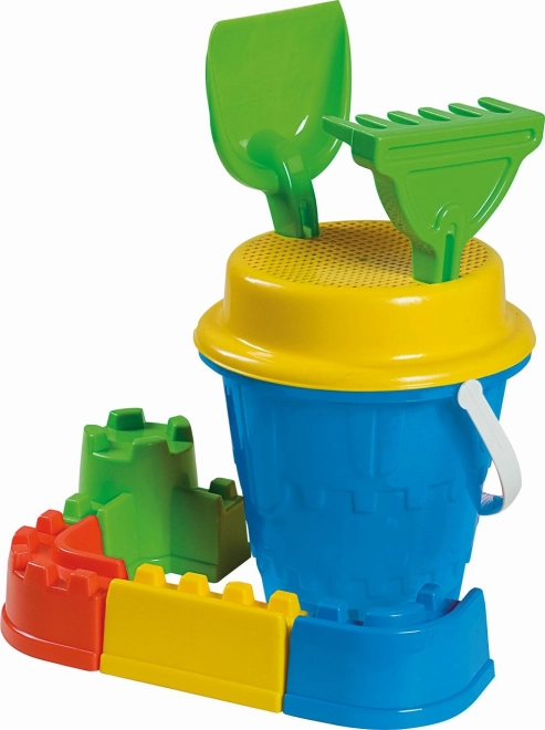 Bouw imposante kastelen met de complete ANDRONI zandset. Dankzij de kasteelemmer en vier muurvormpjes maken kinderen eenvoudig unieke forten. Het zeefje helpt met fijn zand, het schepje en de harkjes maken modelleren en versieren gemakkelijk.