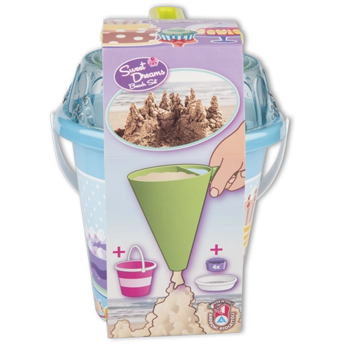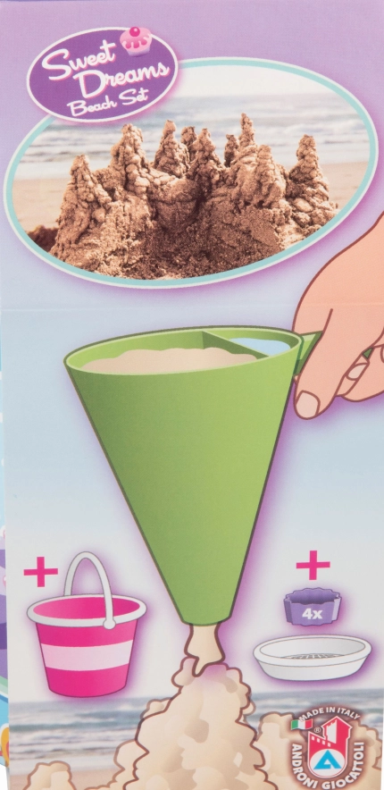 Ontdek creatief spelen op het strand en in de zandbak met deze 8-delige set van Androni. Bevat een emmer, een transparant zeefje in taartvorm, een schepje, 4 vormpjes en een decoratietrechter om zand en water te mengen. Gemaakt in Italië van hoogwaardige kunststoffen, geschikt vanaf 12 maanden.