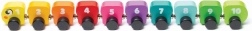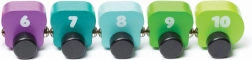 Tien onderdelen genummerd 1–10 vormen een vloeiende regenboog. Kinderen oefenen de volgorde van cijfers en het onderscheiden van kleuren via natuurlijk spel.