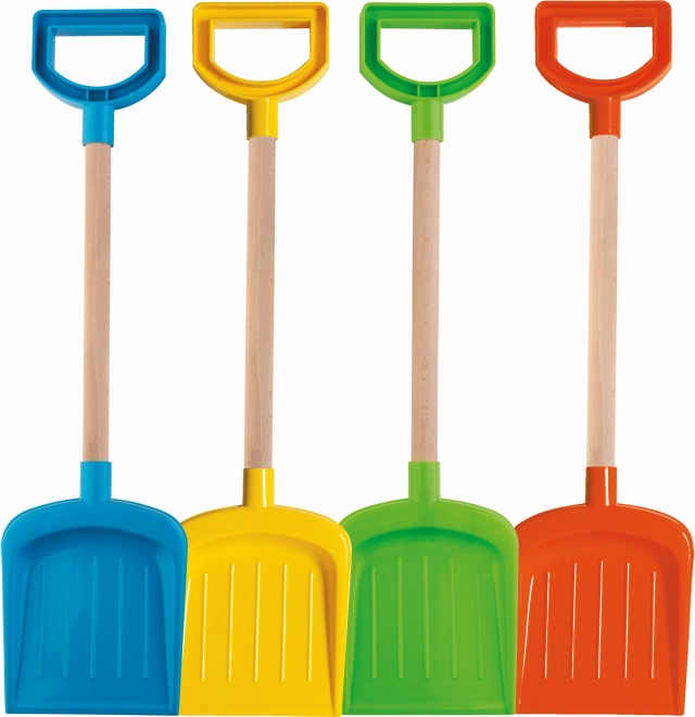 Praktische kinderschep met een houten steel en een comfortabele kunststof handgreep, ideaal voor in de zandbak en de tuin. Gemaakt in Italië van hoogwaardige, stevige en flexibele kunststoffen die ook intensief gebruik in kinderdagverblijven aankunnen. Lengte 53 cm, geschikt vanaf 12 maanden.