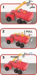 De brandweerwagen is gemaakt van stevig en elastisch plastic dat bestand is tegen breuken en slijtage.