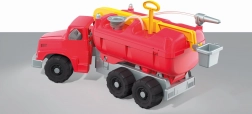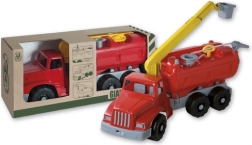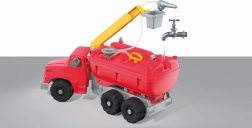 Grote plastic brandweerwagen met een uitschuifbaar platform, handpomp en waterkanon met een bereik tot 8 m uit de Giant Truck-serie, ideaal voor kinderen vanaf 36 maanden.