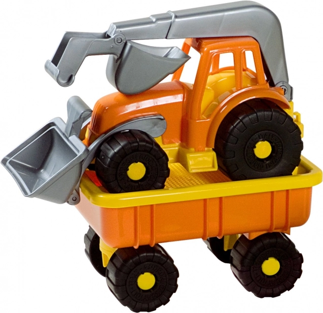Deze tractorlader met aanhanger blinkt uit door de hoogwaardige afwerking van het merk ANDRONI GIOCATTOLI. Dankzij de stevige en toch flexibele kunststoffen kan hij hogere belasting aan en is hij geschikt voor zowel thuis spelen als voor kleuterscholen. De totale lengte met aangekoppelde aanhanger is 58 cm, wat kinderen veel ruimte biedt voor creatief spel op de bouwplaats en in de zandbak.