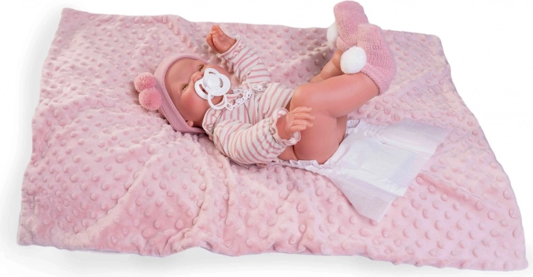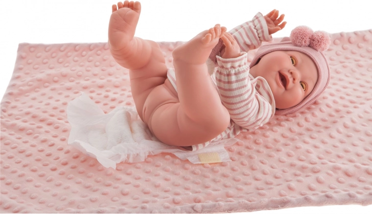 Het merk ANTONIO JUAN legt de nadruk op duurzaamheid – onderdeel van de collectie is kleding van biologische katoen, afkomstig van met de hand geplukte, ecologisch geteelde vezels zonder chemische behandeling. De pop is ideaal voor spel en de ontwikkeling van empathie, fijne motoriek en fantasie.