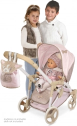 De betoverende poppenwagen in roze‑beige tinten combineert design en functionaliteit. Dankzij de verstelbare wiegbak, die je eenvoudig in een sportzitje verandert, beleven kinderen nog realistischer rollenspel. Inclusief draagtas voor de pop met zachte fluwelen DIDI-borduursels en een praktische windklep.