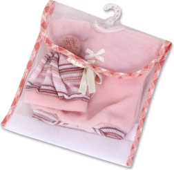 Geef je pop charme en comfort met deze 3-delige kledingset, geschikt voor een baby-pop van 30 cm. Makkelijk aan- en uit te trekken en eenvoudig te sluiten, waardoor dagelijks spelen wordt vergemakkelijkt en de fantasie en fijne motoriek van kinderen wordt gestimuleerd.