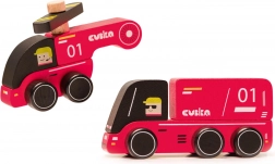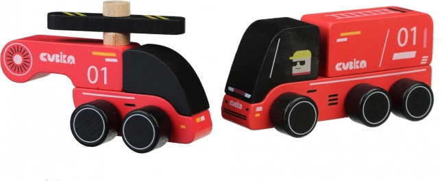 Geef kinderen creatieve speelpret met de houten set CUBIKA brandweer. De set bestaat uit een brandweerauto en een helikopter, gemaakt van het beste esdoorn- en beukenhout en gelakt met watergedragen, geurloze verven. Dankzij de afgeronde randen en de zorgvuldige afwerking liggen ze prettig in kleine handjes en stimuleren ze senso-motoriek, logisch denken en creativiteit.