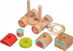 Na het stapelen kan het treintje op pad. Het touwtje van 45 cm is ideaal voor kleine ontdekkers.