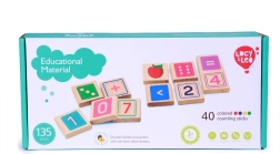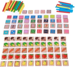 Deze kwalitatieve houten educatieve set helpt kinderen de basis van tellen, het vergelijken van hoeveelheden en eenvoudige sommen onder de knie te krijgen. Dankzij de levendige kleuren en illustraties is leren van nature aantrekkelijk en stimuleert het de fijne motoriek en concentratie.