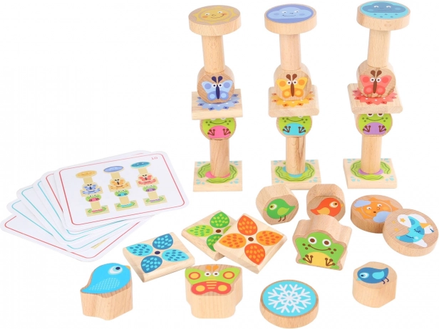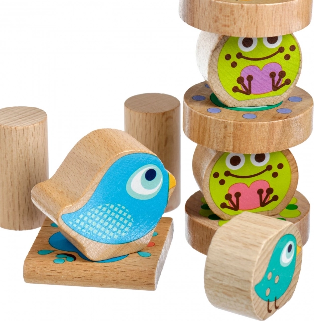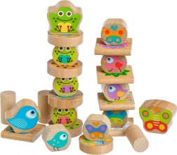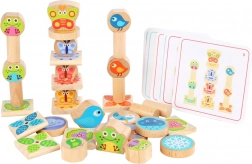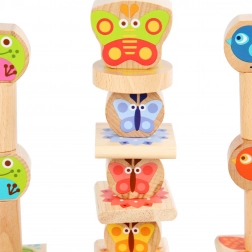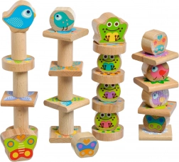 De blokken zijn gemaakt van duurzaam hout, hebben gladde, afgeronde randen en liggen prettig in de hand. Het spel bevordert concentratie, logisch denken en vormherkenning, terwijl kinderen geduld en nauwkeurigheid trainen bij het bouwen van stabiele torens en patronen.