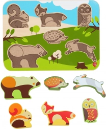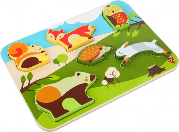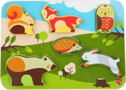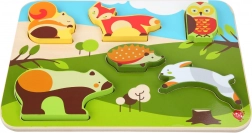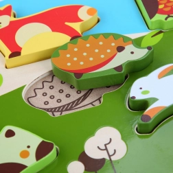 De gladde en stevige plaat met bosillustraties helpt kinderen bij het juist koppelen, terwijl de grote, overzichtelijke vormen de oog-handcoördinatie en het ruimtelijk inzicht bevorderen. De eenvoudige opzet van de motieven houdt de aandacht vast en geeft zelfvertrouwen bij succesvol puzzelen.