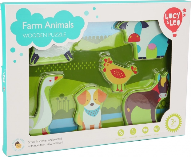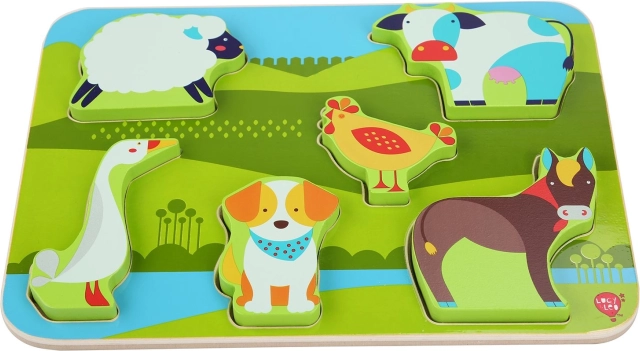 Ontdek de kleurrijke houten inlegpuzzel met boerderijthema van LUCY & LEO, ideaal voor kinderen vanaf 3 jaar. Bevat 7 stevige dierstukjes die gemakkelijk vast te houden zijn en in de gefreesde uitsparingen passen. Het speelgoed stimuleert fijne motoriek, herkennen van vormen en dieren en geduld. De stukjes zijn voldoende groot en stabiel, zodat ze ook zelfstandig kunnen staan.