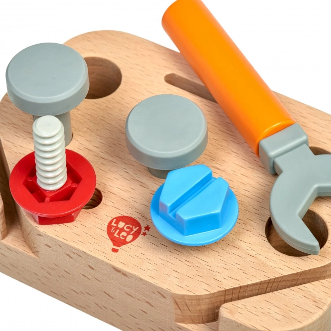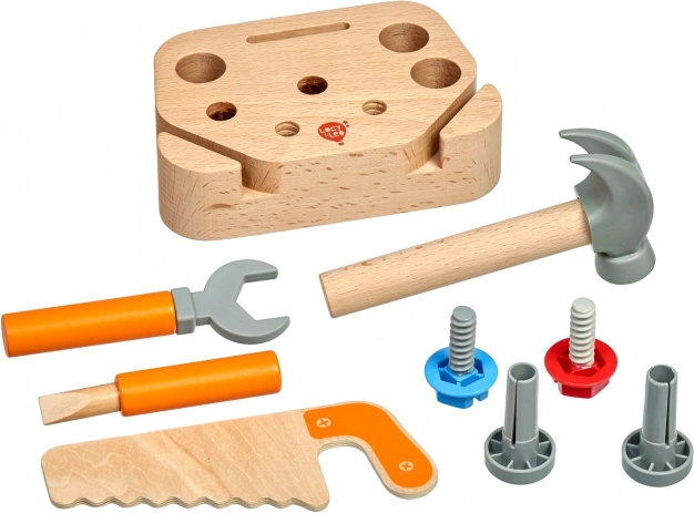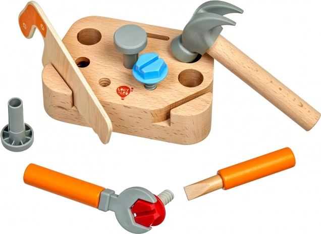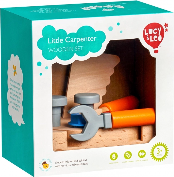 De houten gereedschapsset „Kleine timmerman“ van Lucy & Leo is ideaal voor kleine klussers vanaf 3 jaar. Dankzij de overzichtelijke standaard (11 × 16,5 × 4,5 cm) hebben kinderen al het gereedschap altijd bij de hand. De kwalitatieve combinatie van hout en duurzaam kunststof garandeert veilig en langdurig gebruik.