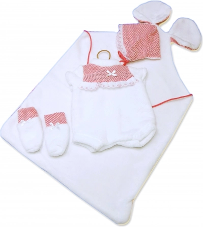 De set bevat een 3-delige outfit en een decoratief matje met oortjes voor nog meer plezier tijdens de verzorging van de pop. Verpakt in een plastic hoes met een kunststof of kartonnen hanger – gemakkelijk op te bergen en te geven.