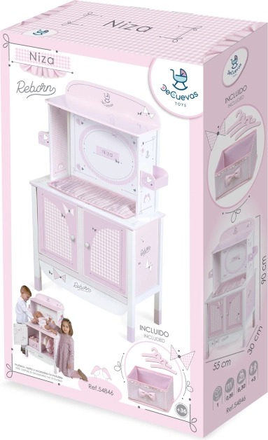 Dankzij het precisie Spaans design en zorgvuldig gekozen materialen oogt de kast licht en strak. Praktische afmetingen zorgen voor stabiliteit en voldoende ruimte voor alle benodigdheden voor de verzorging van een pop tot 45 cm.