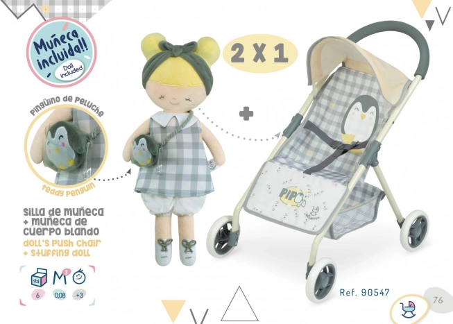 DeCuevas Sportieve poppenwagen met knuffelpop PIPO 2022 maakt deel uit van de nieuwe collectie 2022, die kwalitatieve en stijlvolle accessoires biedt voor toekomstige huisvrouwen. Deze wagen kenmerkt zich door zijn elegante Spaanse design en verfijnde afwerking. Het is eenvoudig te hanteren, wat gewaardeerd wordt tijdens het spelen en opbergen.