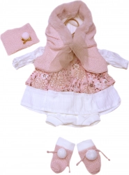 Bevat een jurk, muts, haarband, sokken en sjaal die vrij gecombineerd kunnen worden.