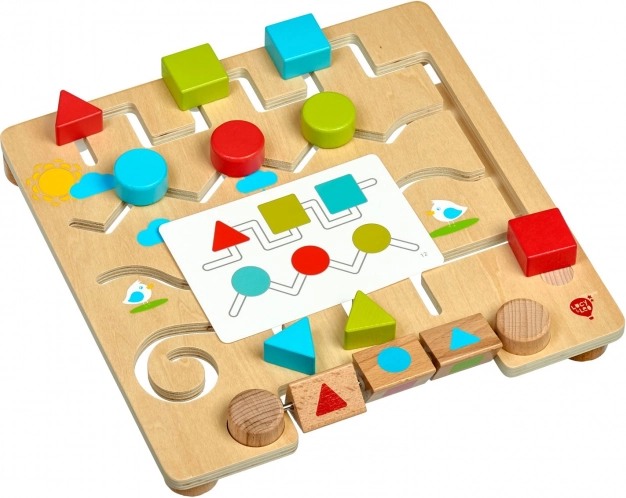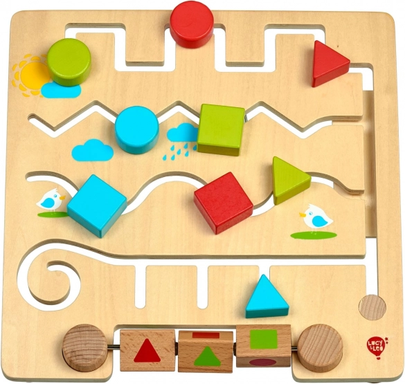 Het slimme houten doolhof met geometrische vormen van LUCY & LEO stimuleert logisch denken, fijne motoriek en visuele waarneming. Kinderen schuiven gekleurde vormen over de banen en leggen volgens voorbeeldkaarten of met behulp van draaiblokken de juiste combinaties. De stevige houten constructie, levendige kleuren en het compacte formaat maken het tot een ideale reisvriendelijke speelgoedset.