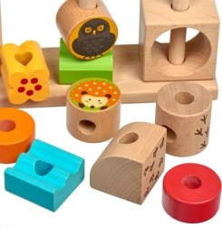 Blokken met bosdieren en kleurrijke geometrische stukken houden de aandacht vast en prikkelen de fantasie. Ideaal voor creatief bouwen en vrij spel.