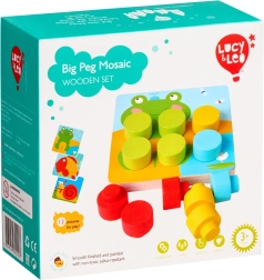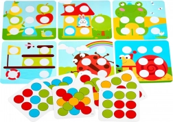 Deze educatieve mozaïek met grote pinnen is een ideale montessori-hulp voor de eerste training van de vingers en de oog-handcoördinatie. Kinderen plaatsen gekleurde pinnen in het houten bord volgens de sjablonen of maken hun eigen patronen, waarbij ze logisch denken, geduld en visuele waarneming oefenen.